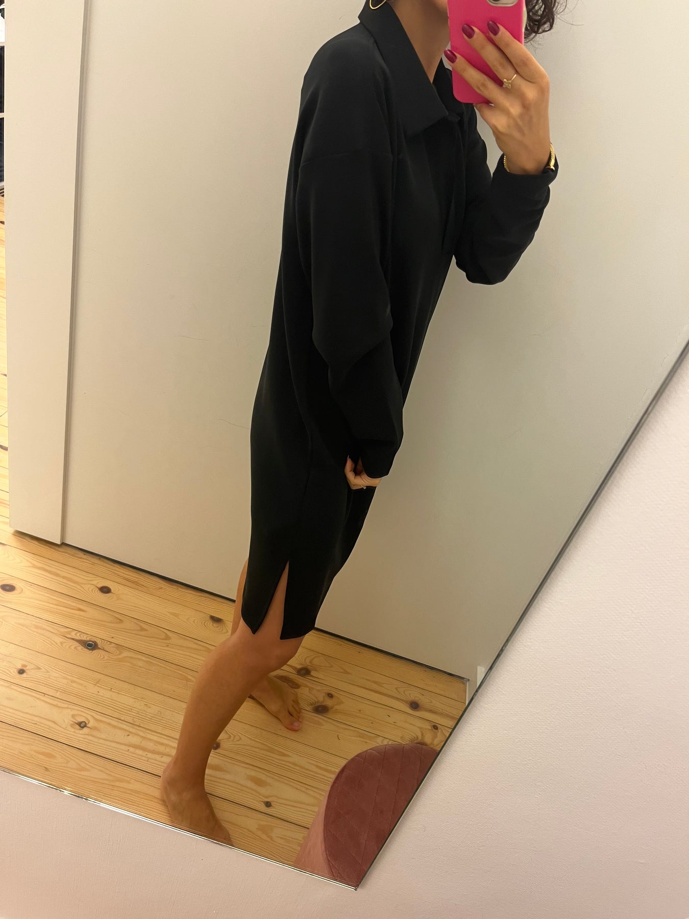 Helle is een korte, zwarte polojurk met lange mouwen.