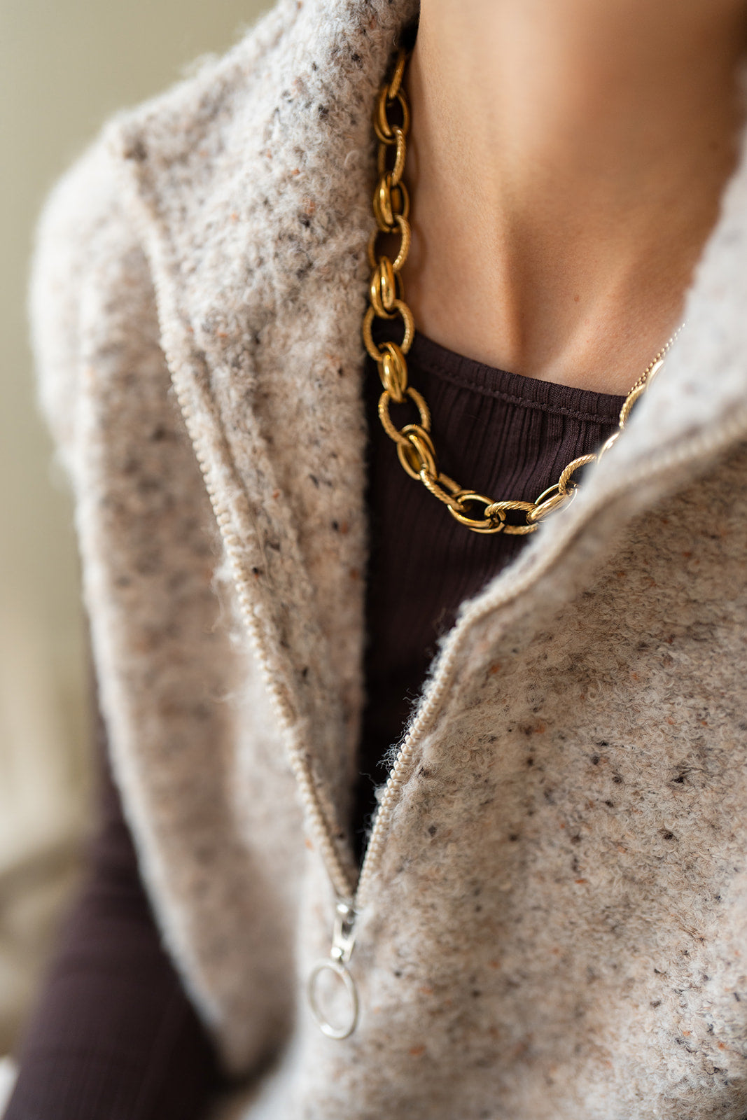 Cella is een bruin T-shirt met ronde hals en lange mouwen