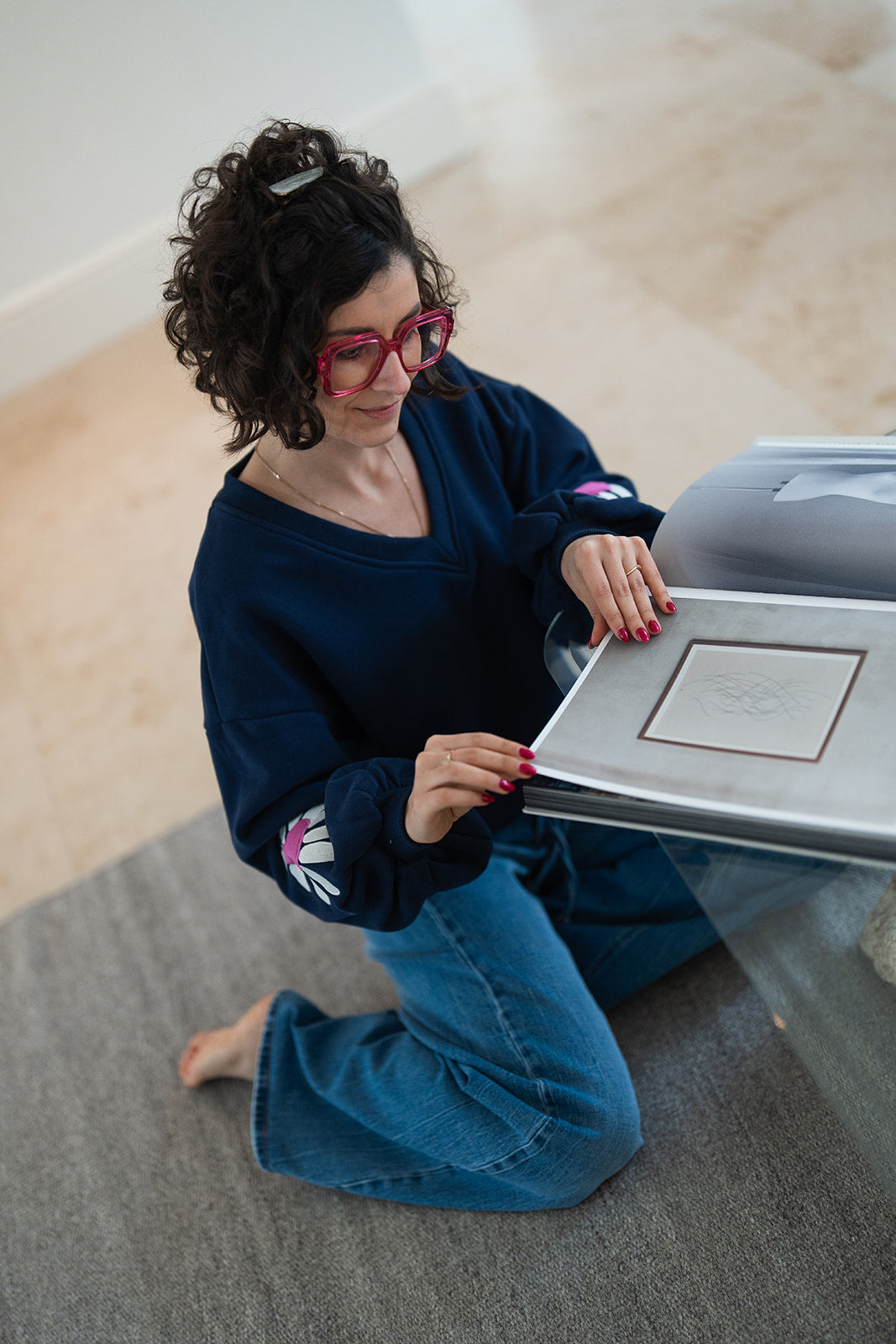 Madelief is een donkerblauwe sweater met een opgestikte madelief op de mouwen, ronde hals en pofmouwen.Fitting:valt op maatSamenstelling: 50% katoen, 50% elasthan
