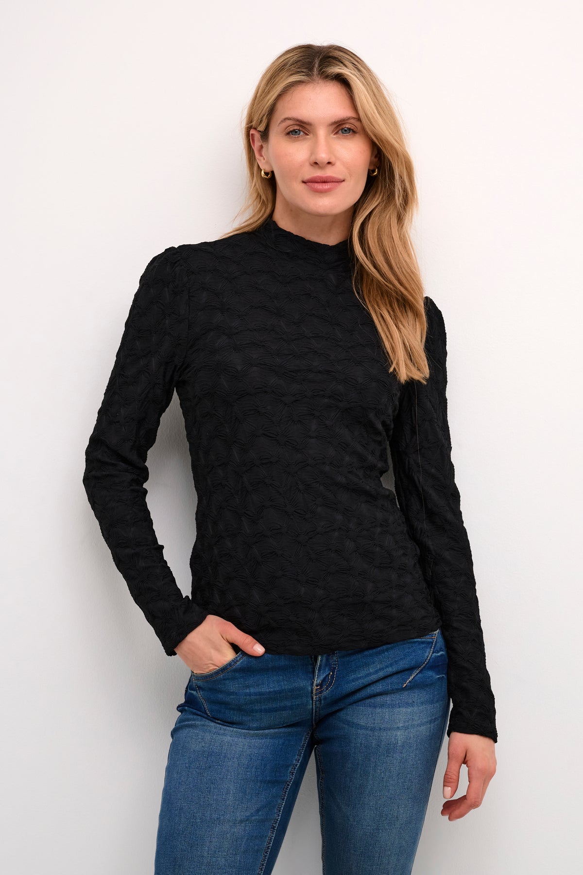 Elf is een zwarte sous pull met structuur in de stof.Fitting: valt op maatSamenstelling: 96% polyester, 4% elasthan