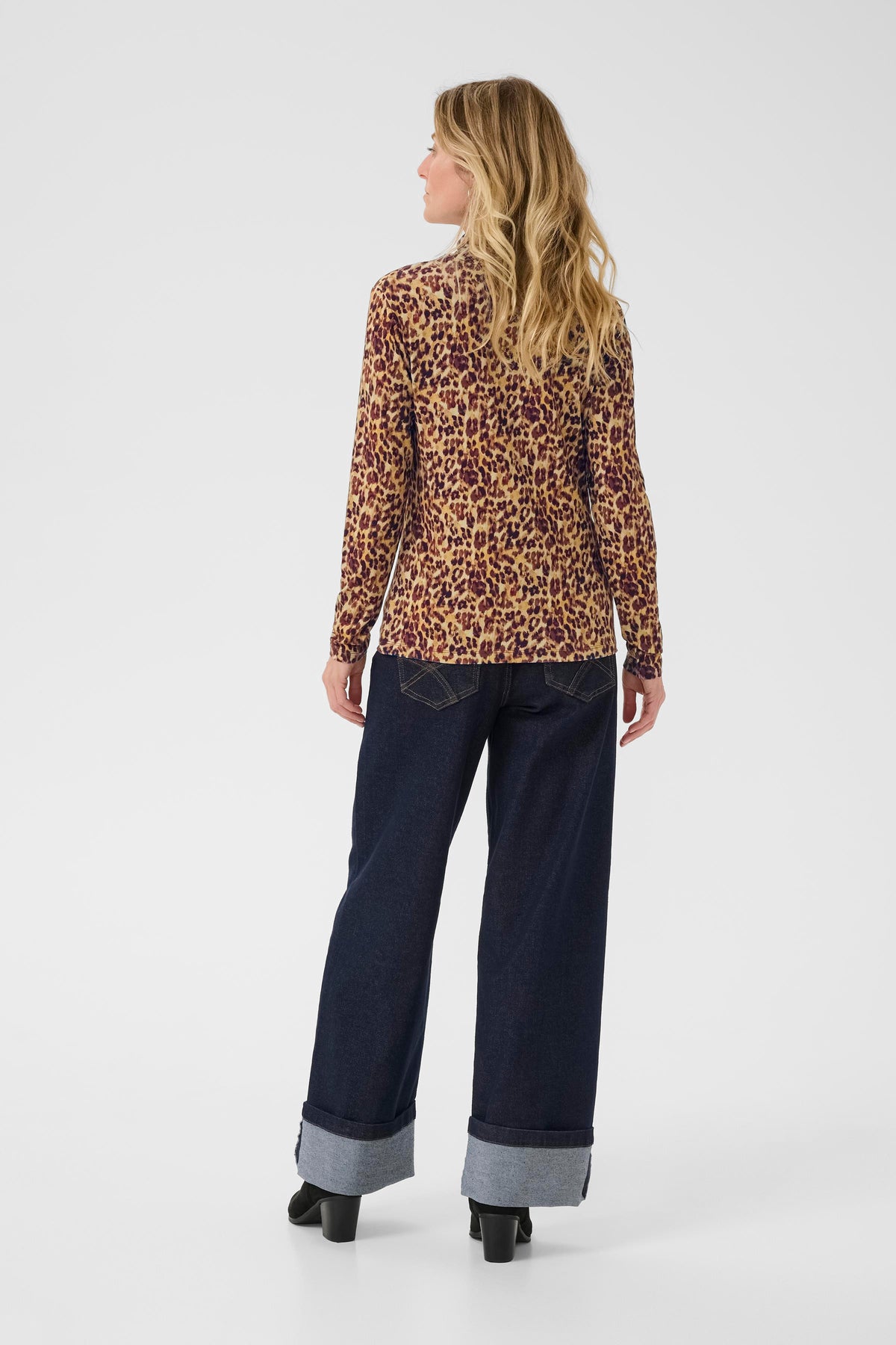 Kausa is een bruine/camel sous pull in panterprint.Fitting: valt op maatSamenstelling: 95% viscose, 5% elasthan