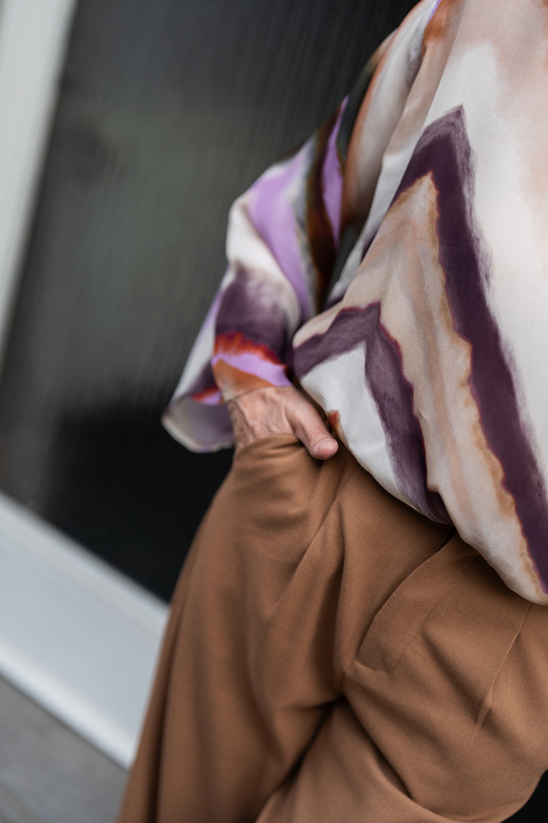 Zigzag is een veelkleurige blouse met ronde hals en 3/4e brede mouwen.