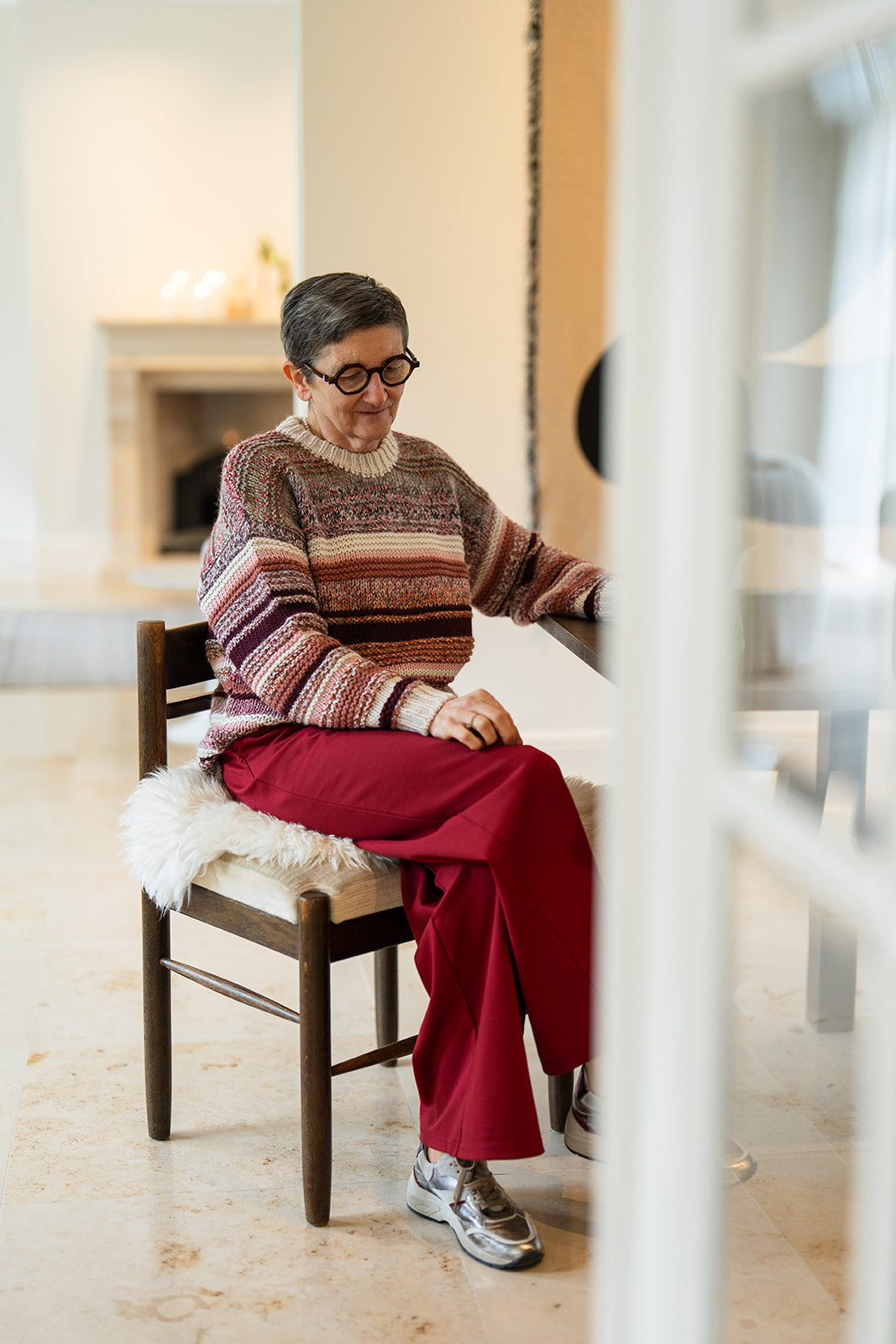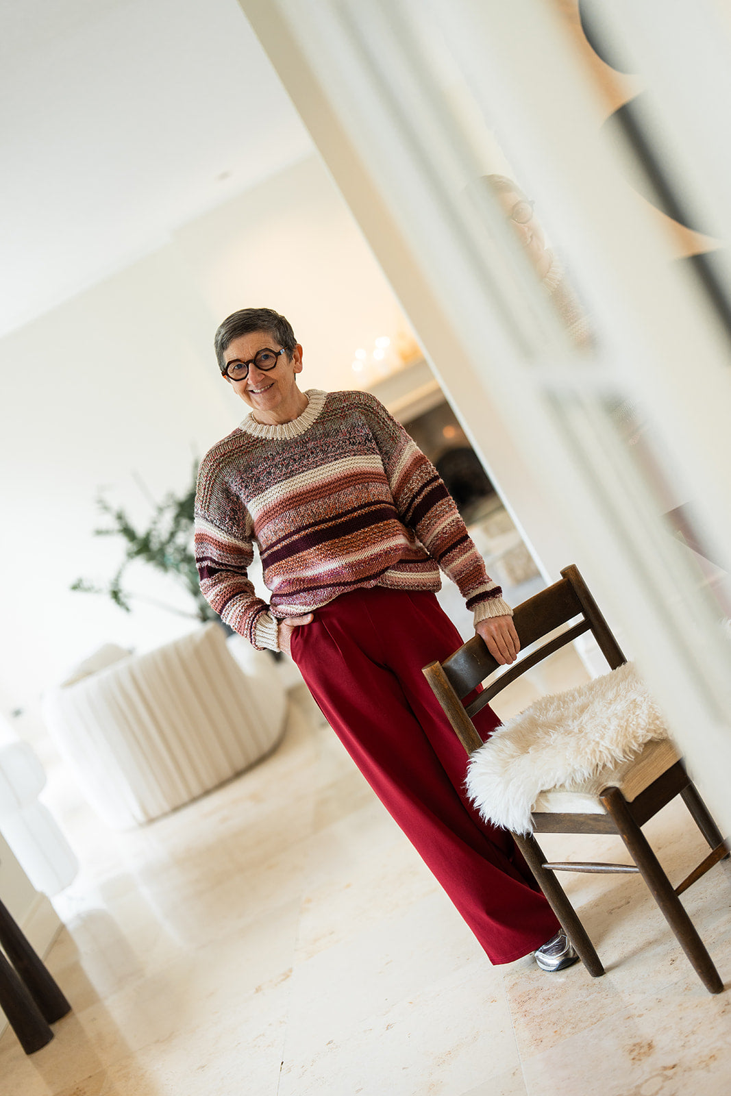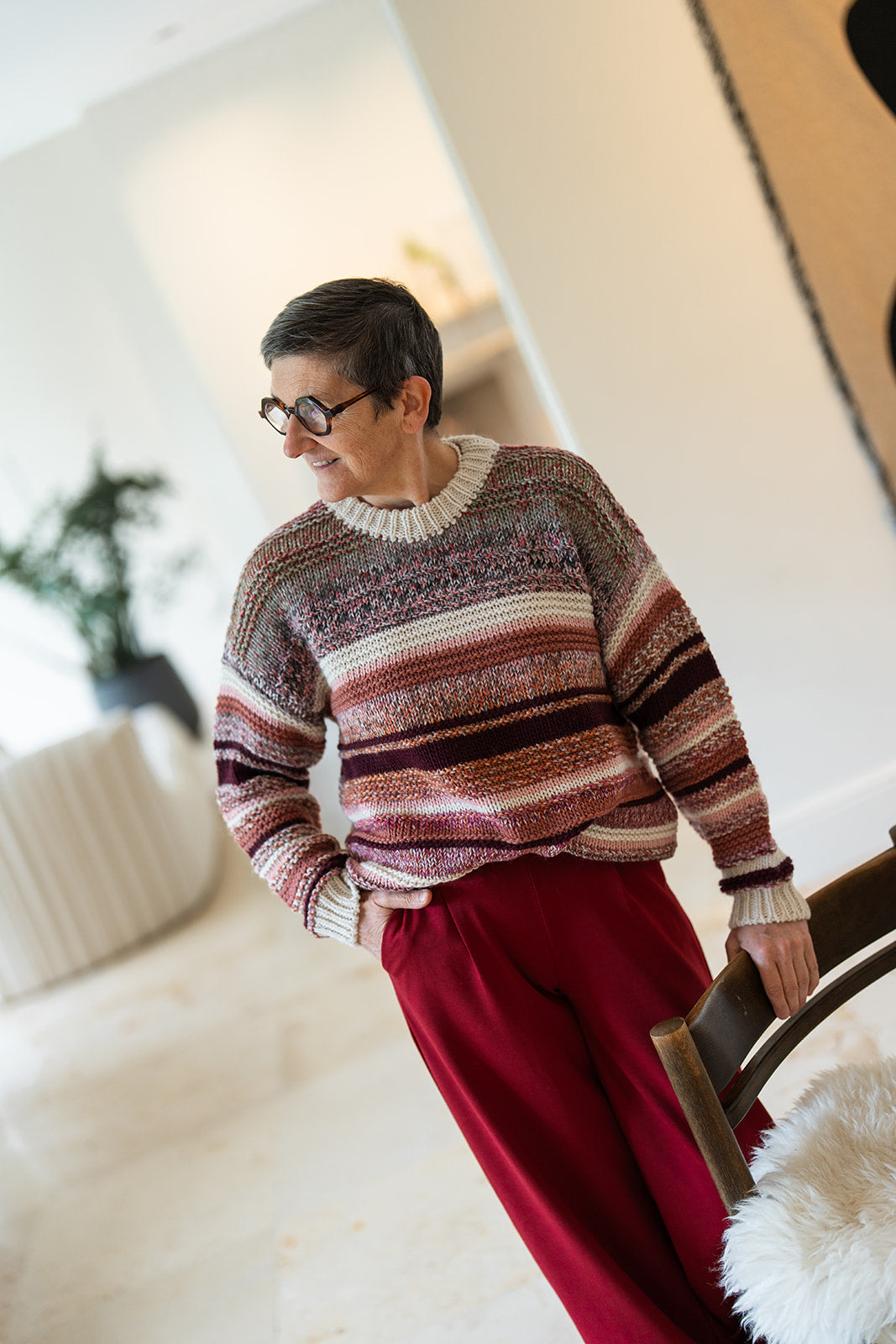 Rani is een veelkleurige, gestreepte trui met ronde hals en lange mouwen.Fitting: valt op maatSamenstelling: 70% acryl, 30% wol